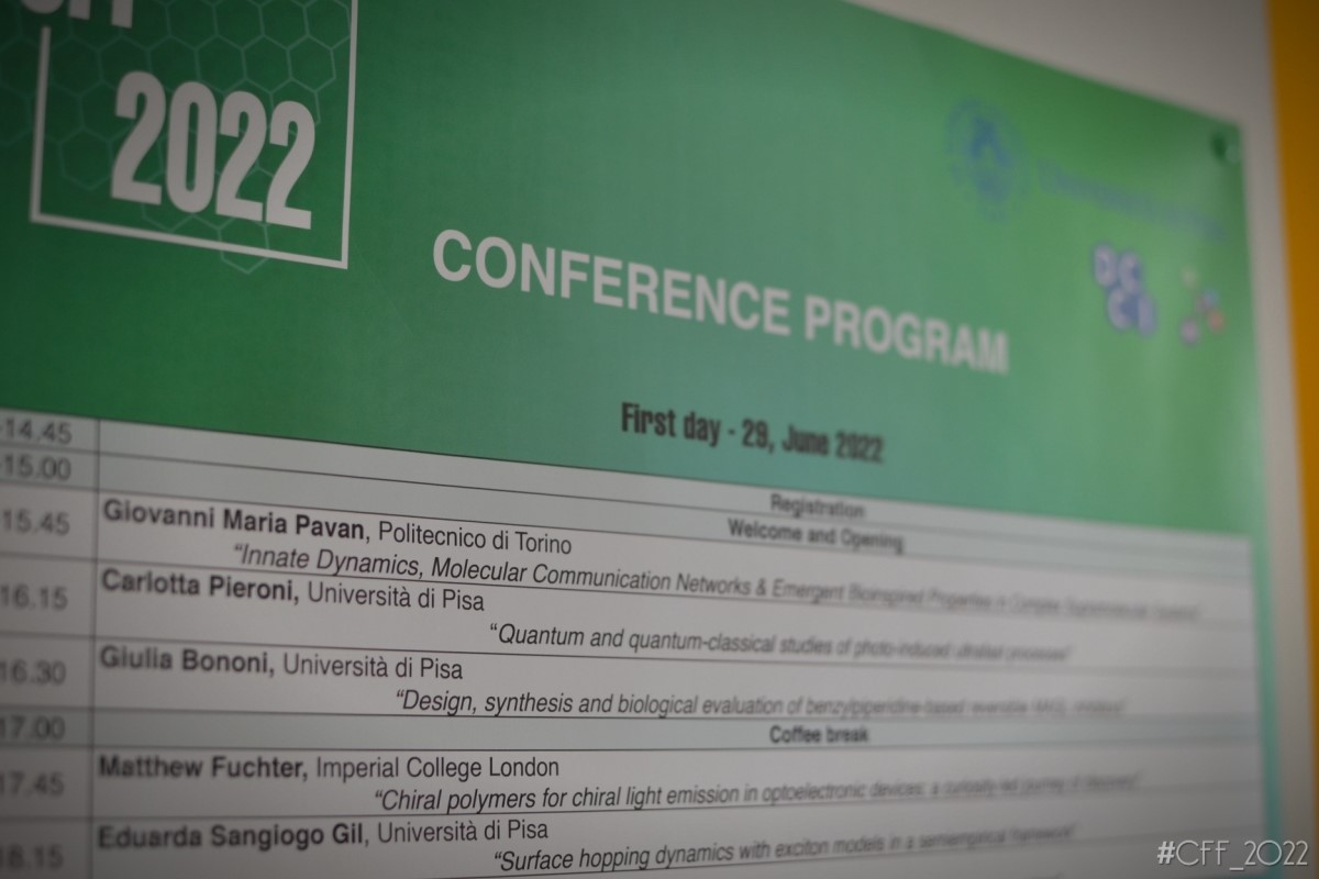 Chemistry for the Future (CFF) is a yearly international conference on the frontiers of Chemical Research. It is organized by the Doctoral School in Chemistry and Materials Science (DSCM) and the International Office of the Dipartimento di Chimica e Chimica Industriale (DCCI).