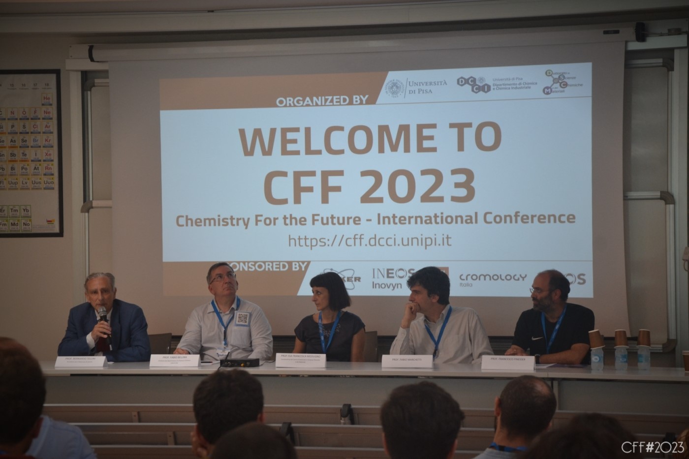 Chemistry for the Future (CFF) is a yearly international conference on the frontiers of Chemical Research. It is organized by the Doctoral School in Chemistry and Materials Science (DSCM) and the International Office of the Dipartimento di Chimica e Chimica Industriale (DCCI).